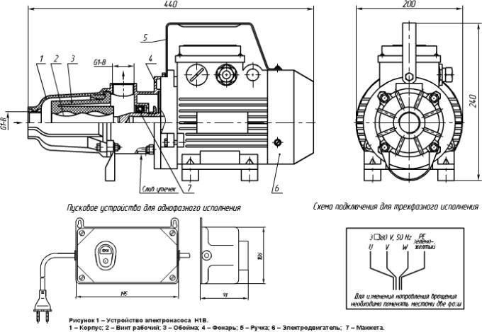 Н1В — конструктивное исполнение Н1В – самовсасывающий дренажный;